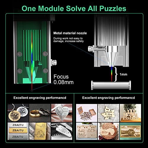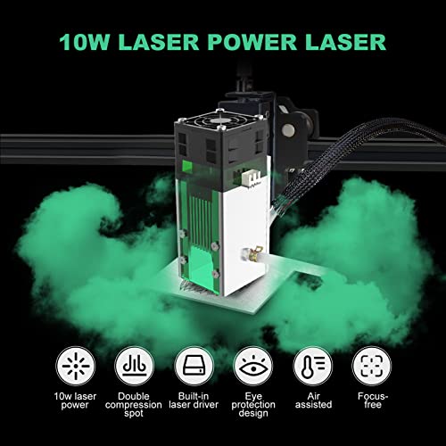 [Migliorate prestazioni elevate]: la potenza di uscita ottica è 10 W, che può incidere direttamente l'acciaio inossidabile a specchio. La Super Power ti offre un'eccellente abilità di taglio e una velocità di incisione super veloce. L'accuratezza delle incisioni è fino a 0,08 mm e la dimensione del raggio è di 0,08 mm*0,08 mm, permettendoti di incidere motivi abbastanza piccoli da soddisfare le tue esigenze.