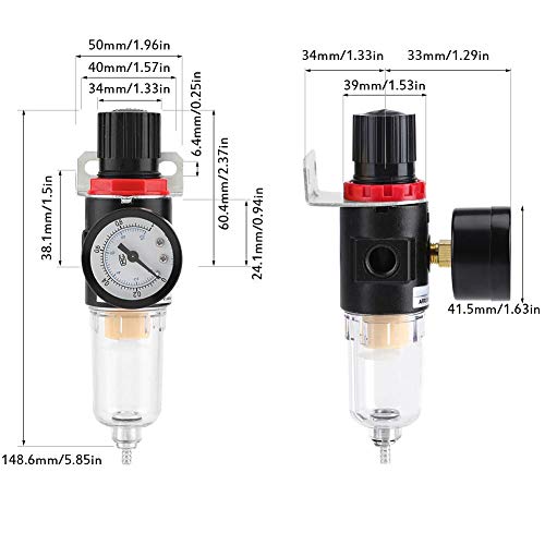 Jadpes Valvola regolatore Aria condizionata, 1/4" Compressore Filtro Aria Regolatore Pressione Acqua Separatore di umidità Strumento per la Pulizia del separatore