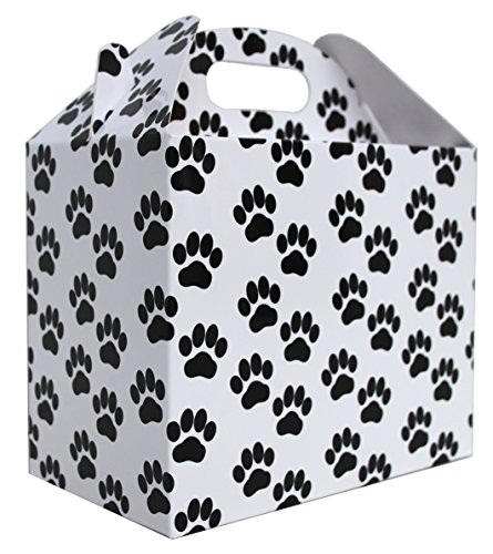 Jaffa Imports Ltd 10 x Scatole Regalo / Scatole per Timpani / Scatole per Feste / Borse per Feste - Stampe della Zampa in Bianco e Nero - Sacchetti Regalo Cane, Gatto, Cucciolo