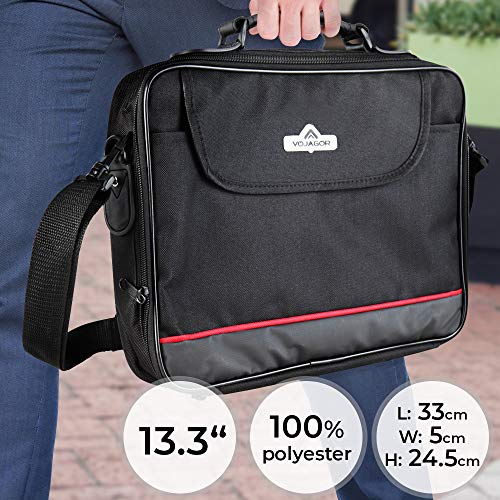 Jago Borsa per PC portatile con tracolla, 33 x 24,5 x 5 cm, nero con strisce rosse