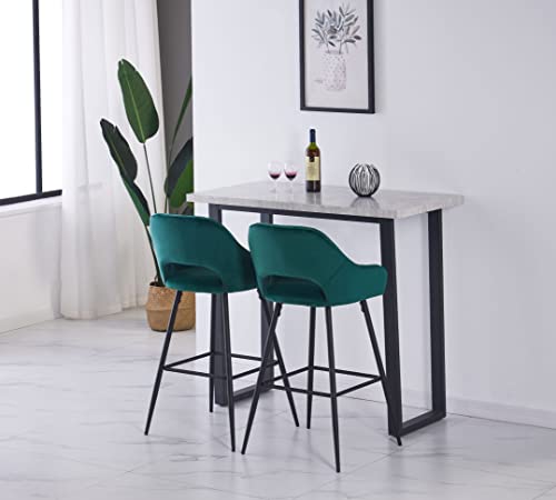 JaHECOME Sgabello da bar in velluto imbottito con schienale, braccioli, gambe in metallo nero e poggiapiedi per bar, cucina, banconi e bistrot (velluto, verde), 97*50*42 cm