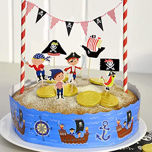 JAHEMU Cake Topper Pirates Decorazione della Torta di Halloween Cupcake Topper Compleanno Torta Topper Bambino per Festa a Tema Pirati, Baby Shower, 45 Pezzi