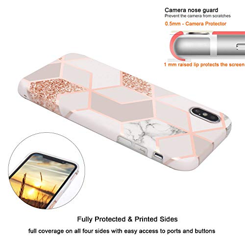 Jaholan Cover iPhone X Cover iPhone XS Bling Glitter Sparkle Rosa Oro Marmo Design Cover TPU Gel Custodia Protettiva Ultra Sottile Leggera Case Morbida Cover per iPhone X XS
