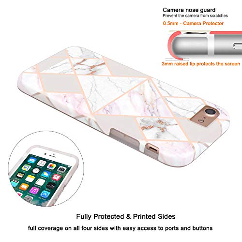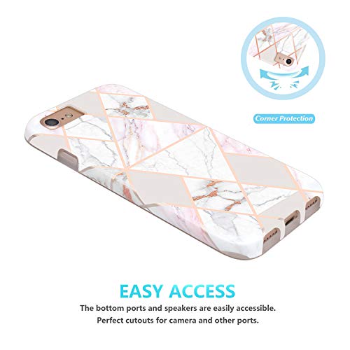 Jaholan Custodia protettiva in morbido silicone TPU per iPhone 7, iPhone 8, iPhone 6/6S, motivo marmo bianco, trasparente rosa