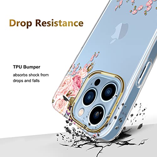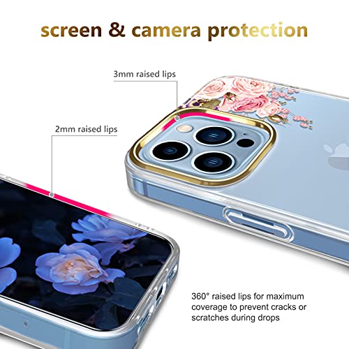 Jaholan - Custodia trasparente compatibile con iPhone 13 Pro Max con fiori, per ragazze e donne, antiurto, con motivo floreale glitterato e motivo floreale, colore: Rosa