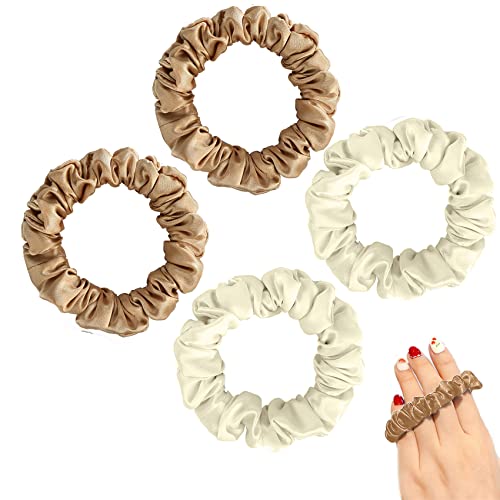 Jaimela 4 Pezzi Elastici Scrunchie per Capelli, Small Bande Elastiche per Capelli, Fasce per Capelli, Accessori Per Capelli, Elastici Per Capelli Di Donna & Ragazza (Bianco e Oro)
