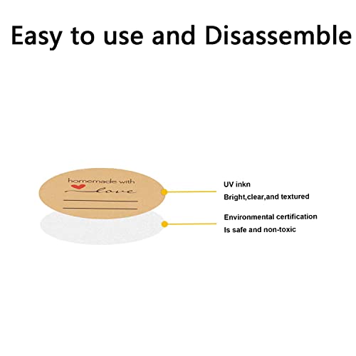 Jaimela 500 Pezzi Etichette Autoadesivo, Handmade Etichette, Kraft Etichette Round per Cottura DIY Scrapbooking Regalo Decor, Handmade with Love 5CM Etichette