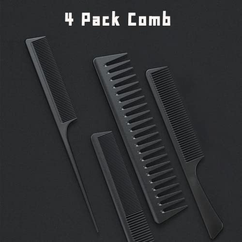 Jaimela 4 Pezzi Pettini Capelli, Pettine a Denti Larghi, Carbonio Fibra Barbiere Pettine, Antistatico Pettine Capelli, Set Pettine Styling, Tutti i Tipi di Capelli