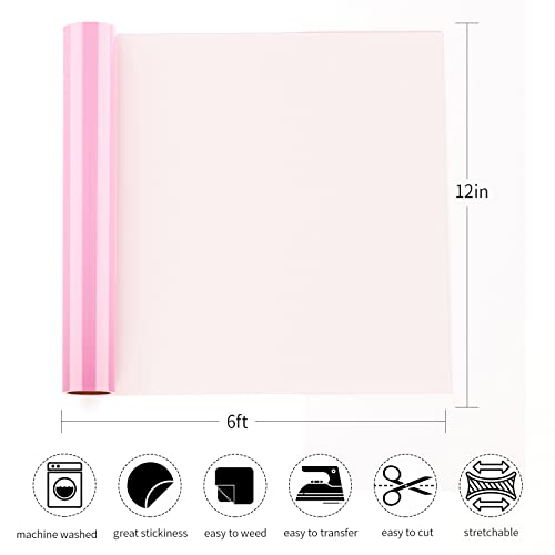 JAJOJSJO Vinile Termoadesivo per Tessuti 12" x 6ft Rotoli Vinile Adesivo Pellicola per Plotter, Facili da Tagliare ed Erbaccia Vinile Termovinile per Tessuti, T-shirt, Camicie, Borse, Cappelli (Rosa)