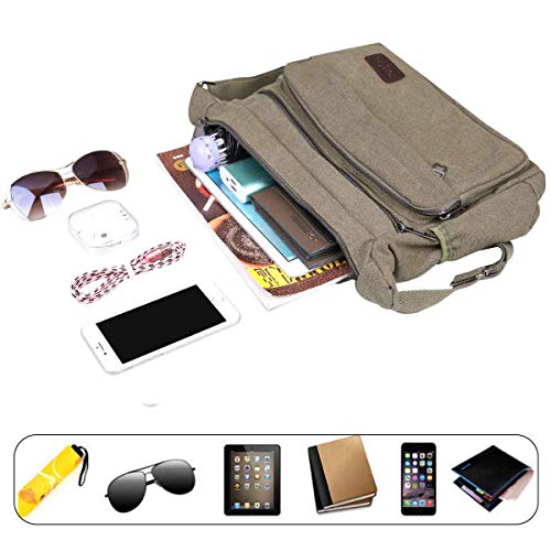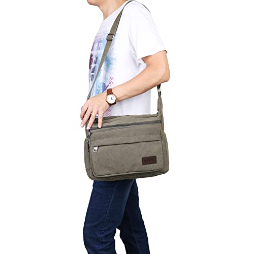 JAKAGO Borsa a Tracolla Impermeabile,Borse a Spalla da Uomo Multi Tasche,Borse Messenger di Tela per Casual,Viaggio,Lavoro Scuola Pesca Escursionismo uso Quotidiano (Verde)