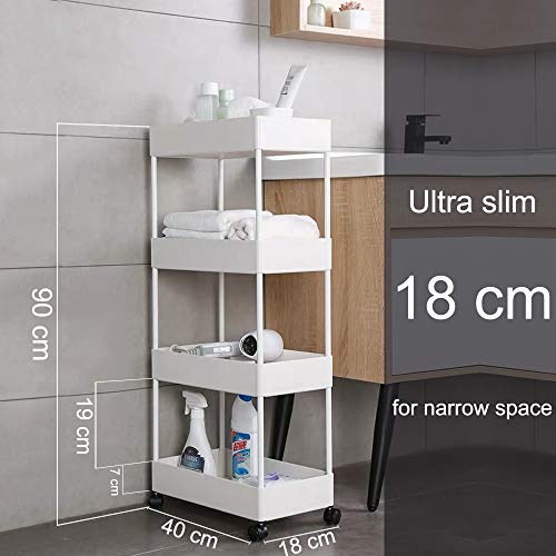【Design perfetto】Dimensioni complessive: 40 x 18 x 90 cm. Piccolo carrello stretto con ampio spazio ma necessita di un minimo spazio. Ti aiuterà a ottimizzare il più possibile l'utilizzo dello spazio. Questo carrello multifunzione per un perfetto organizer per la casa in cucine, bagni, garage, lavanderie e si adatta a vari stili di arredamento.