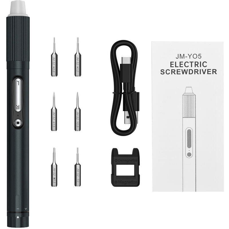 Caratteristiche: Driver elettrico con potente motore magnetico: la velocità di rotazione è fino a 170 giri / min. È dotato di un cambio tutto in metallo. Durante la rotazione, l'elevata concentricità della punta è ≤0,2 mm, il che migliora efficacemente l'efficienza di smontaggio. Compresi 5 pezzi di cacciavite S2: pentagono 0,8, 1,2;
