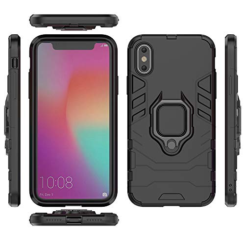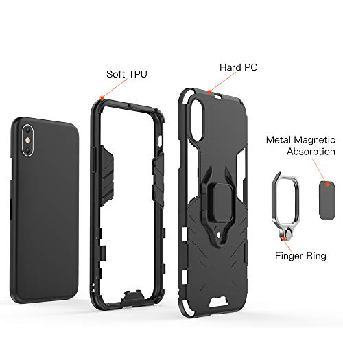 Jaligel Cover per iPhone XS e iPhone X, Custodia con Supporto per Anello Cavalletto(Lavoro con Supporto Magnetico per Auto) Cover Case con Assorbimento degli Urti Custodia in Silicone TPU - Nero