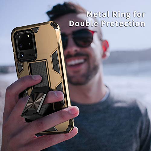 Jaligel Cover per Samsung Galaxy S20 Ultra, Custodia con Supporto (Lavoro con Supporto Magnetico per Auto) Antiurto TPU Bumper Silicone Custodia AntiGraffio Armor Hard Protettiva Cover - Oro