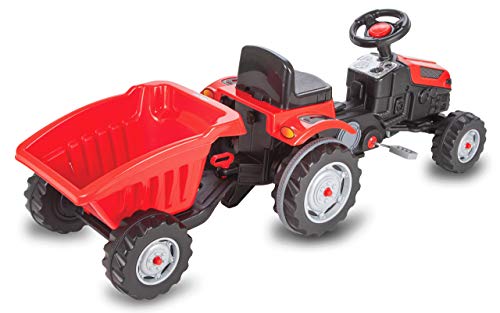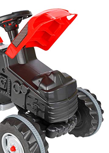 JAMARA- Trattore Strong Bull con rimorchio, Protezione antiribaltamento, azionamento a Pedale, Sistema di sterzo, Sedile Regolabile, clacson, Peso Massimo 60 kg, Colore: Rosso, taglia unica, 460825
