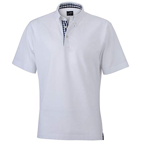 James & Nicholson Polo Button-Down con Inserti (3XL, Bianco/Navy-Bianco)