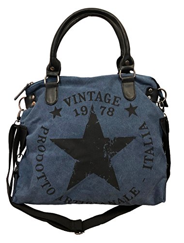 JameStyle26, “Star Bag Vintage” - borsa da donna in stile vintage con stella stampata sopra e manici, shopper alla moda, in tela