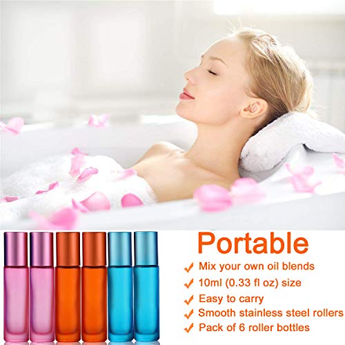 Qualità superiore: le nostre bottigliette in vetro con rullo sono realizzate in vetro smerigliato di alta qualità, ricaricabili e durevoli. Confezione da 6 bottigliette con rullo, da 10 ml, include 1 contagocce e 1 apribottiglie. Il contagocce può aiutare a trasferire liquidi e a ridurre gli sprechi. Con il nostro apribottiglie incluso aprire e riempire le bottigliette sarà facilissimo. Per risparmiare tempo e denaro.