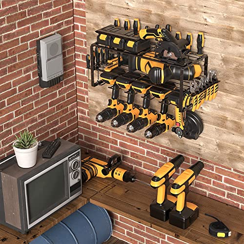 Jamiukro Armadio per attrezzi in metallo, 5 slot, impianto di officina, supporto per avvitatore a batteria, supporto da parete per attrezzi e organizzazione