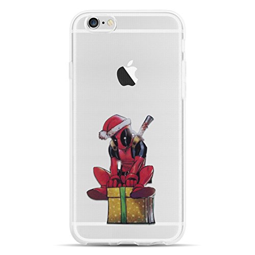 JAMMYLIZARD Custodia per iPhone 6 e 6s | Cover [Sketch] in Silicone Trasparente Morbido Ultra Slim con Disegno di Natale, Deadpool