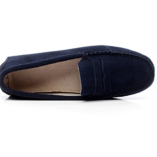 Jamron Donna Classico Scamosciato Penny Mocassini Comfort Fatto a Mano Pantofola Blu Marino 24208 EU35