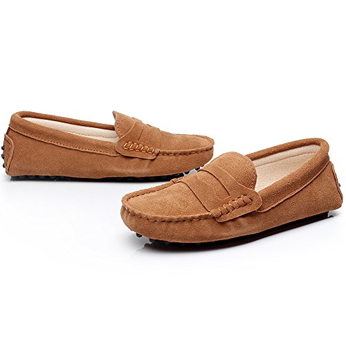Jamron Donna Classico Scamosciato Penny Mocassini Comfort Fatto a Mano Pantofola Abbronzatura 24208 EU39.5