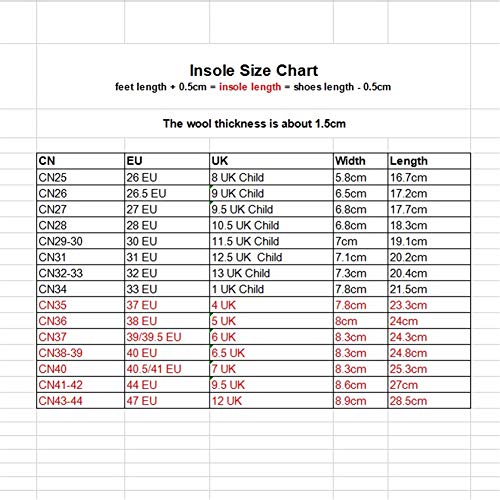 * Queste solette potrebbero essere più grandi delle solite solette a causa della lana spessa, se trovi che le solette sono grandi, puoi tagliare una parte del bordo per adattarlo. Non influirà sulla qualità o sull'esperienza d'uso.