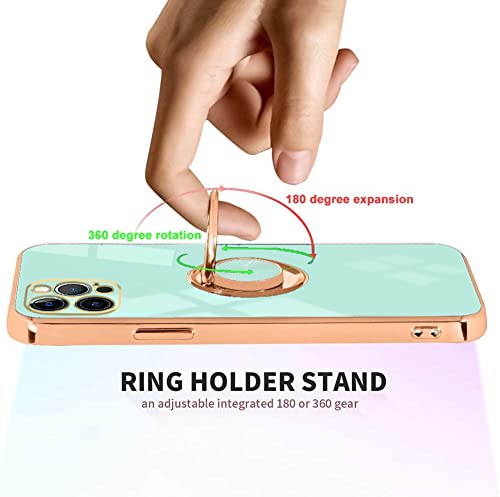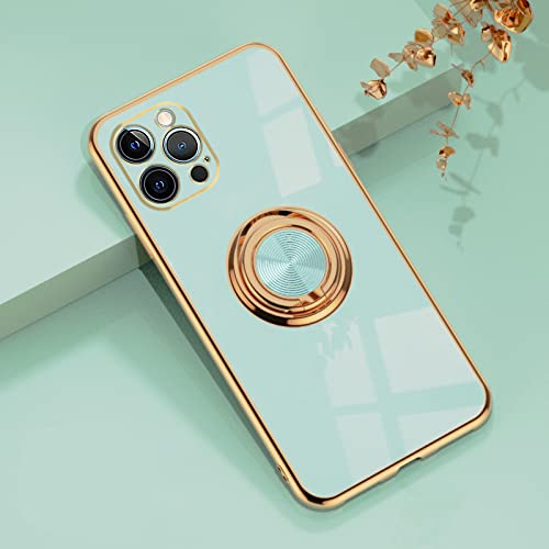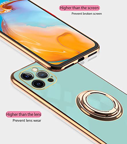 Jancyu Cover Per iPhone 13 Pro Max, Custodia iPhone 13 Pro Max Silicone, Placcatura Antiurto Case 360° Metallo Ring Kickstand Protettiva Magnetica Per Auto (verde, iPhone 13 Pro Max)