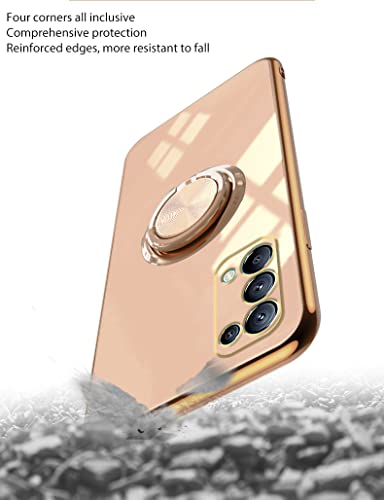 Jancyu Cover Per OPPO Find X3 Lite, Custodia OPPO Find X3 Lite Silicone, Placcatura Antiurto Case 360° Metallo Ring Kickstand Protettiva Magnetica Per Auto (albicocca, Find X3 Lite)