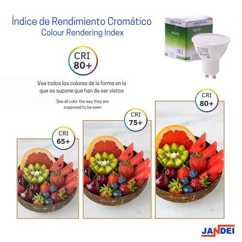JANDEI - Confezione da 5 lampadine LED GU10 7W (equivalente a 50W), bianco freddo 6000K, 650 Lumen, lampadine a risparmio energetico, non dimmerabili, per casa, ufficio, negozio.