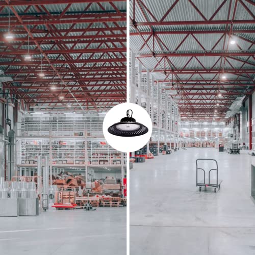 【ALTA QUALITÀ E LUMINOSITÀ】 UFO LED High Bay di alta qualità che fornisce un'illuminazione di 9000 lm, consentendo un'elevata luminosità e un risparmio energetico fino al 90%. Ha una durata di 35.000 ore e una garanzia di 3 anni.