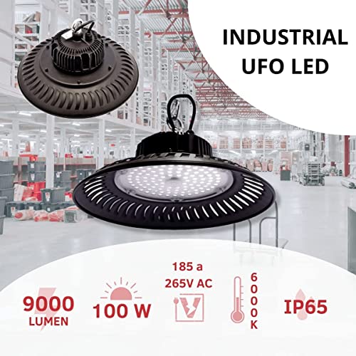 Jandei - Confezione 6x Proiettore Faretto LED UFO ECO 100W (750W Equivalenti), 9000 LM, Luce Fredda 6000K, Impermeabile IP65. Lampada Industriale per Stadio Coperto, Parcheggio, Centri Logistic