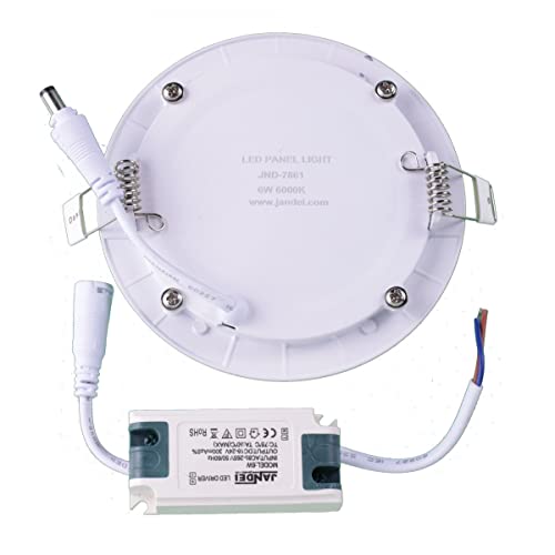 JANDEI - Faretto LED a pannello tondo extra piatto. Illuminazione 6W, 4200K, Bianco Neutro. Illuminazione per interni per ufficio, corridoi, casa, officina. Risparmio energetico.