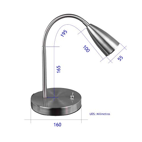 Lampada da tavolo modello FLEX finitura acciaio opaco GU10 Lampada da tavolo FLEX finitura in acciaio opaco con collo flessibile, con portalampada GU10 lampadina 5W inclusa Lampada da tavolo modello FLEX moderna lampada con il collo flessibile (cigne) per poter orientarla nel punto desiderato.