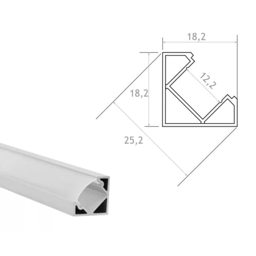 JANDEI - 4 x Profili Alluminio Bianco 1 metro, Forma a V per Installazione di Strisce di Luci a LED in angoli a 90°, Coperchio Traslucido - 18,2 mm x 18,2 mm (include tappi terminali e accessori)