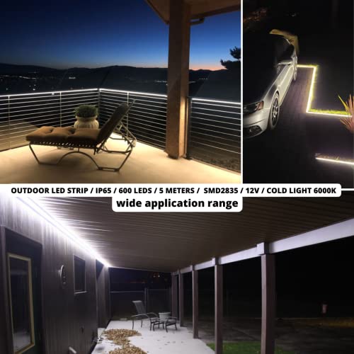 JANDEI - Strisce Led 5 metri 12V per Esterni IP65, Luce Fredda 6000K, 120 Led/m, SMD2835, Luci LED Stagne per Decorazione Balcone, Giardino, Patio (non include alimentatore)