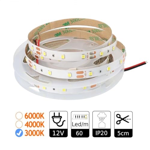 ✔ 【Illuminazione perfetta a basso consumo】Striscia LED di alta qualità a 12 V e chip SMD2835 per un consumo energetico ridotto. Ha una potenza di 6 W/m e 480 lumen/m. Con 60 LEDs/m (totale 300 LED per bobina) per una grande illuminazione.