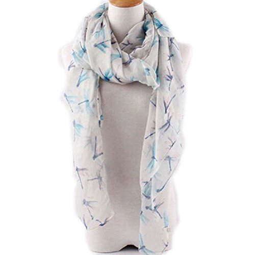 JaneDream 1 Sciarpa da Donna con Stampa Libellula, in Stile Dolce Bianco