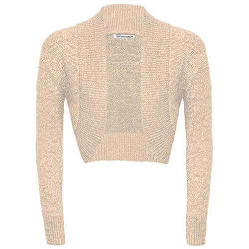 Janisramone Donna Signore Lucente Lurex Knitted Lungo Manica Pianura Bolero Alzata di Spalle Crop Cardigan Corto Cima