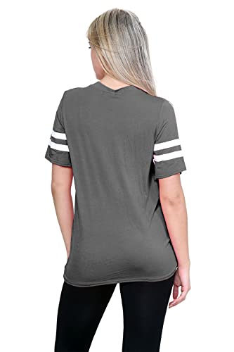 Janisramone - Maglietta oversize da baseball, da donna, con scollo largo, motivo stampato a righe, con scritta “New York 98 Brooklyn” Charcoal S
