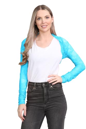 Janisramone Nuovo Donne Le Signore Maglia Manica Lunga Pizzo Scrollata di Spalle Bolero Cardigan Ritagliata