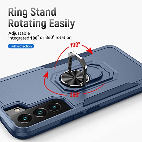 Janmitta Cover per Samsung Galaxy S22 5G, Custodia antiurto con Staffa Ruotabile a 360°[Doppio strato PC + TPU] -Blu