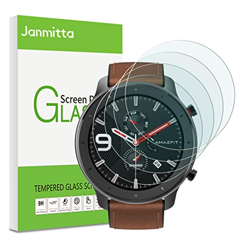 Janmitta Pellicola Protettiva per Amazfit GTR 47mm (4 Pack),2.5D Protezione Schermo in Vetro Temperato [Bordi Arrotondati] [Ultra-Clear] Protezione Film con Amazfit GTR 47mm