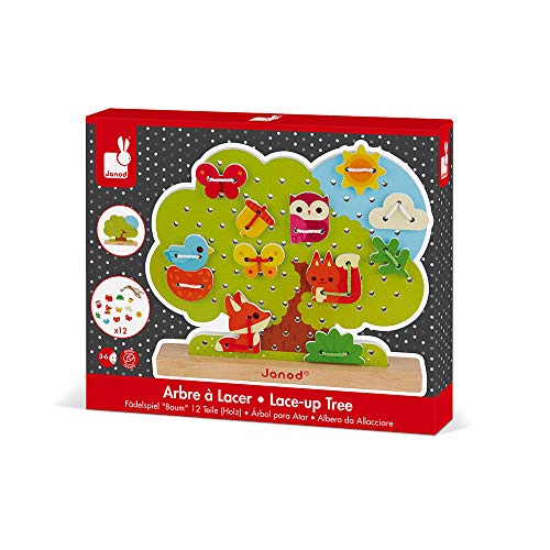Janod- Albero Giocattolo in Legno da Allacciare, Multicolore, J05316