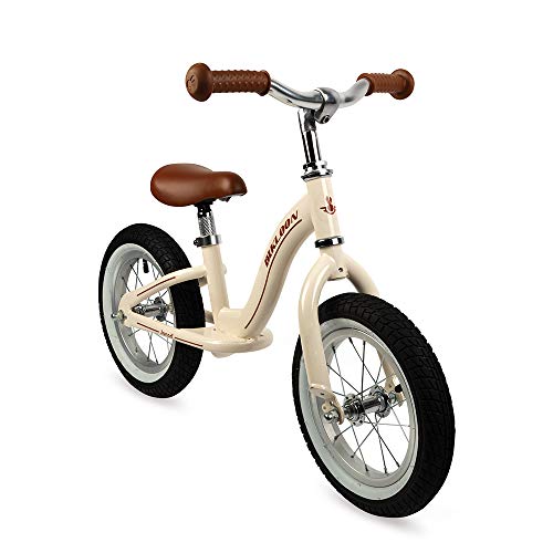 Adorabile aspetto retrò: questa bici senza pedali ha uno stile decisamente vintage in metallo beige, simile a quello delle biciclette tradizionali
