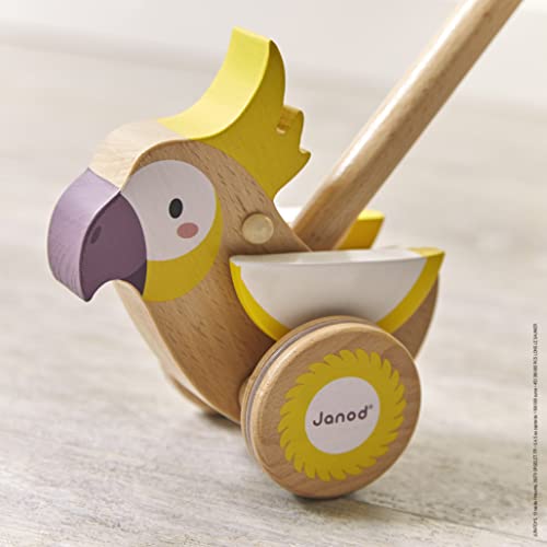 Janod - Cacatua Trascinabili - Giocattoli Didattici e Prima Infanzia - Motricità e Immaginazione - Rotelle Silenziose - Collaborazione WWF - Certificato FSC - Da 18 Mesi in Su, J08604