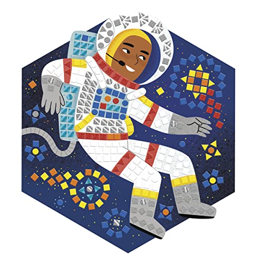 UNA ATTIVITÀ SEMPLE ED ORIGINALE: Questo cofanetto creativo consente ai bambini di realizzare 5 dipinti a tema spaziale, utilizzando mosaici glitterati, metalizzati o opachi per dare colori e rilievo a razzi, astronauti e pianeti.