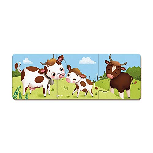 Aiuterà a scoprire e familiarizzare con gli animali e la loro famiglia (es. il pulcino con il gallo e la gallina).
