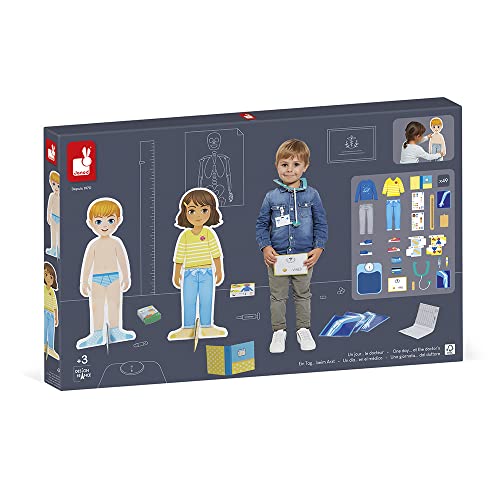 Janod - Un Jour... Dal dottore - Giocattolo di Imitazione Professione - 49 Accessori Inclusi - Grandi Personaggi da 65 cm - Sviluppa l'Immaginazione - Certificato FSC - Dai 3 Anni, J06621