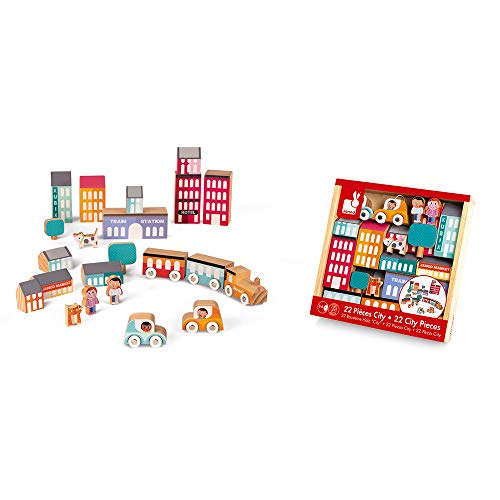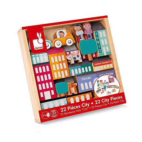 Janod- Kubix City Set di Figurine, 22 Pezzi, Multicolore, J08071
